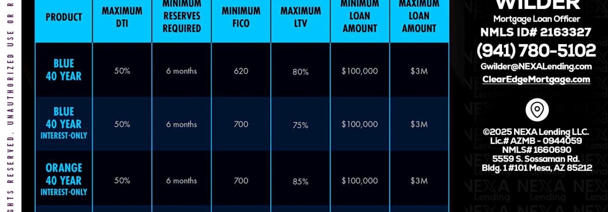 Hi, my name is Gregory Wilder. I’m a Loan Officer with Clear Edge Mortgage LLC Empowered by NEXA Lending LLC, offering personalized mortgage solutions, fast customized quotes, great rates and service with integrity.