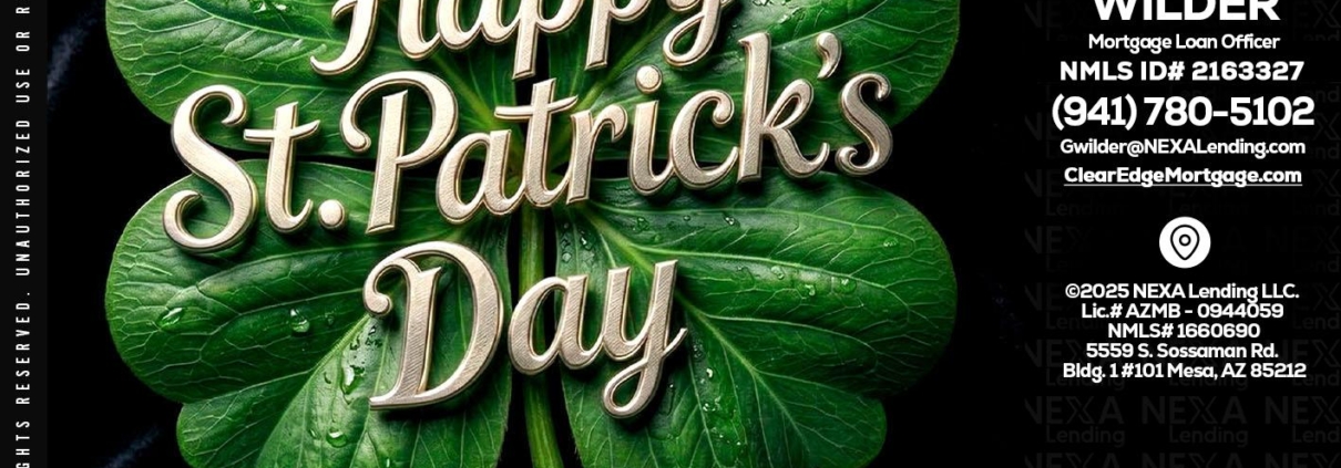 happy st. Patricks day - Gregory Wilder -Mortgage Loan OfficerHi, my name is Gregory Wilder. I’m a Loan Officer with Clear Edge Mortgage LLC Empowered by NEXA Lending LLC, offering personalized mortgage solutions, fast customized quotes, great rates and service with integrity.