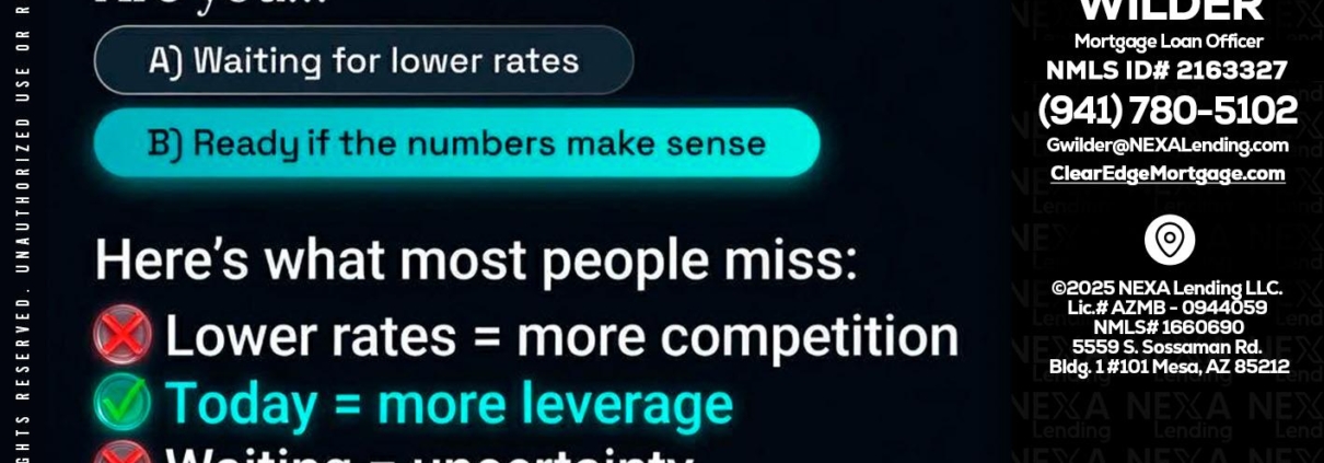 IF YOU ARE - Gregory Wilder -Mortgage Loan OfficerHi, my name is Gregory Wilder. I’m a Loan Officer with Clear Edge Mortgage LLC Empowered by NEXA Lending LLC, offering personalized mortgage solutions, fast customized quotes, great rates and service with integrity.