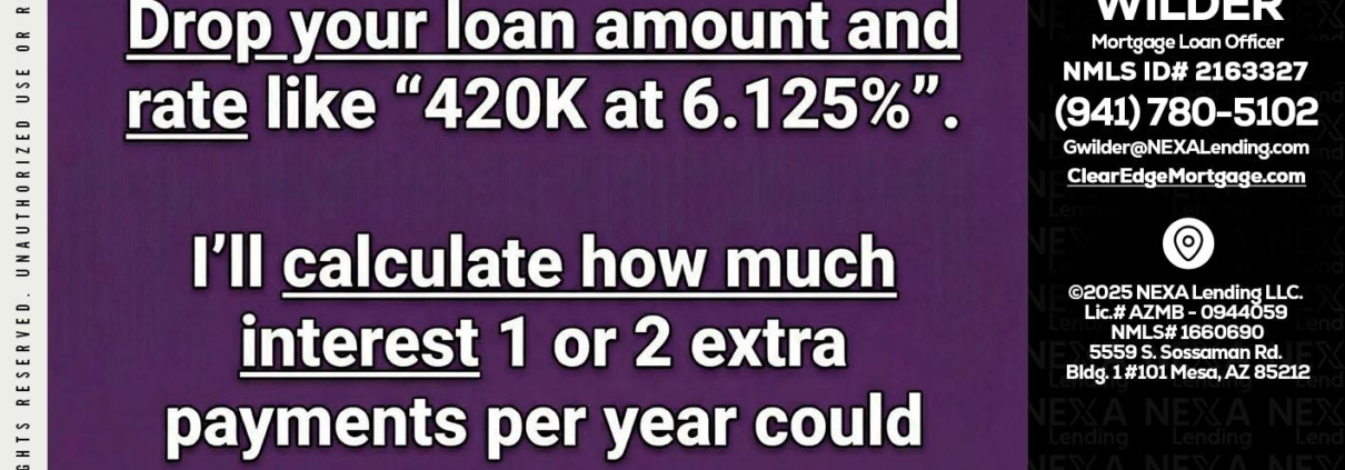 Hi, my name is Gregory Wilder. I’m a Loan Officer with Clear Edge Mortgage LLC Empowered by NEXA Lending LLC, offering personalized mortgage solutions, fast customized quotes, great rates and service with integrity.