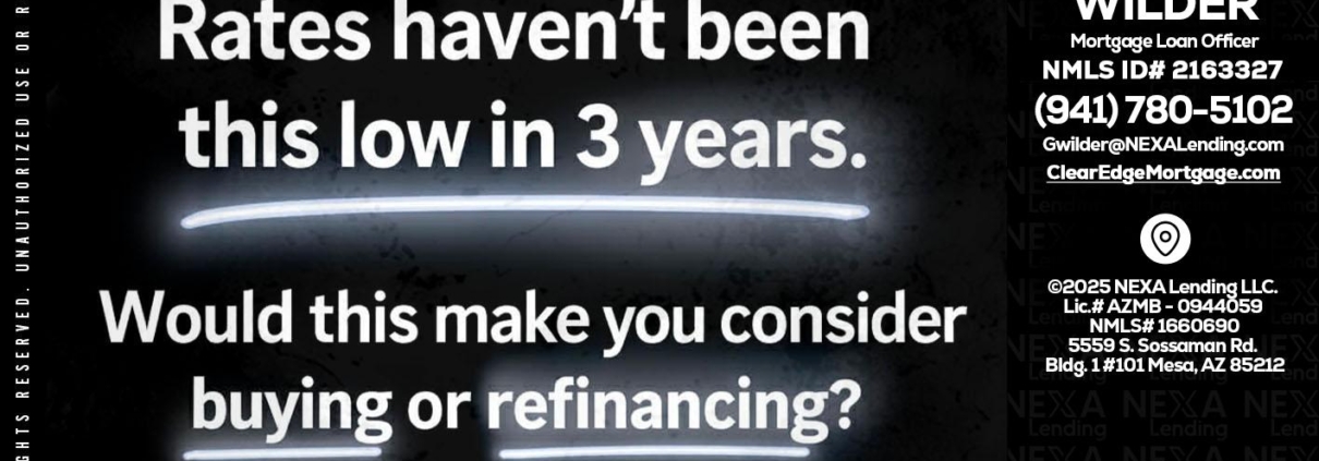 RATES HAVEN'T - Gregory Wilder -Mortgage Loan OfficerHi, my name is Gregory Wilder. I’m a Loan Officer with Clear Edge Mortgage LLC Empowered by NEXA Lending LLC, offering personalized mortgage solutions, fast customized quotes, great rates and service with integrity.