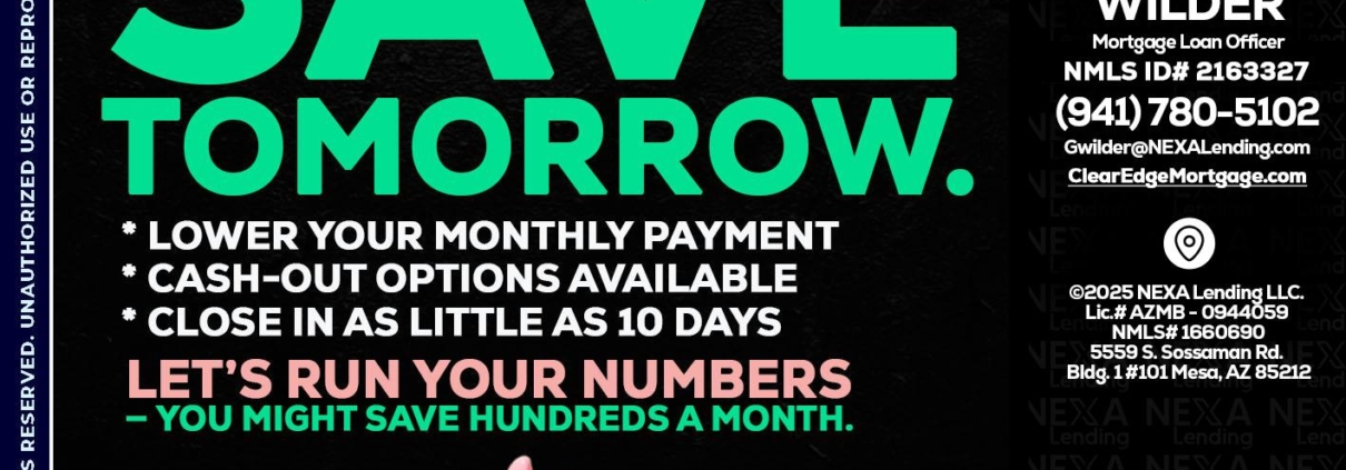 Hi, my name is Gregory Wilder. I’m a Loan Officer with Clear Edge Mortgage LLC Empowered by NEXA Mortgage LLC, offering personalized mortgage solutions, fast customized quotes, great rates and service with integrity.