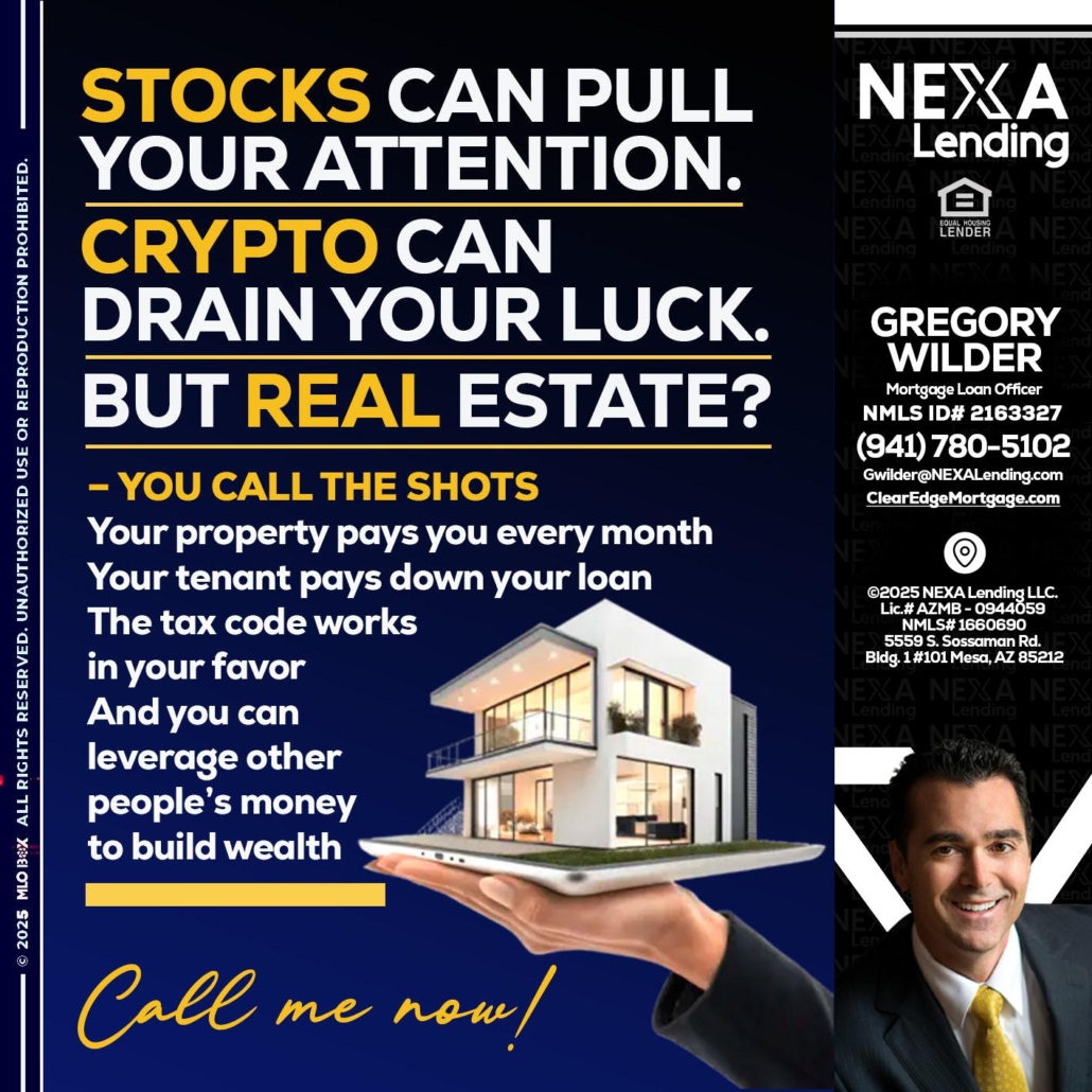 STOCK YOUR - Gregory Wilder -Mortgage Loan OfficerHi, my name is Gregory Wilder. I’m a Loan Officer with Clear Edge Mortgage LLC Empowered by NEXA Mortgage LLC, offering personalized mortgage solutions, fast customized quotes, great rates and service with integrity.