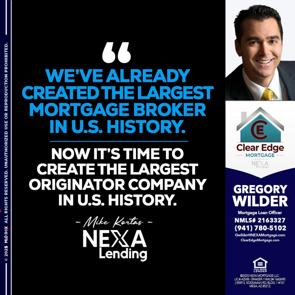 weve already - Gregory Wilder -Mortgage Loan OfficerHi, my name is Gregory Wilder. I’m a Loan Officer with Clear Edge Mortgage LLC Empowered by NEXA Mortgage LLC, offering personalized mortgage solutions, fast customized quotes, great rates and service with integrity.